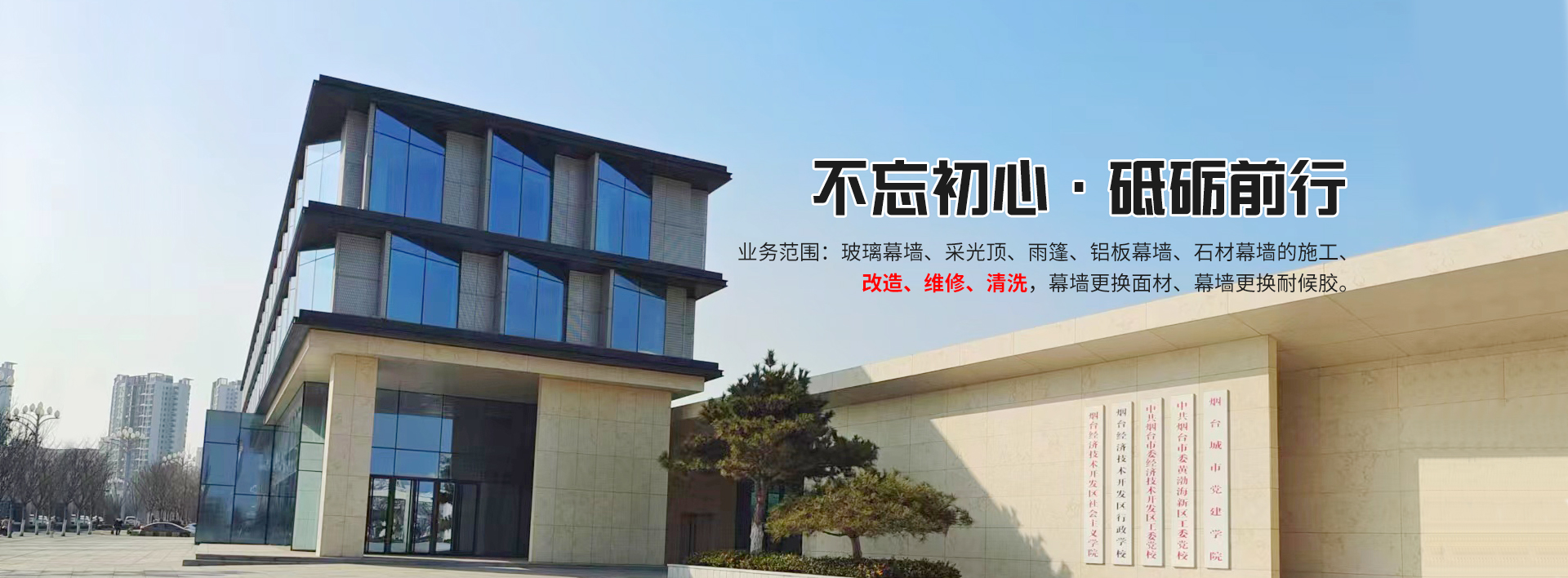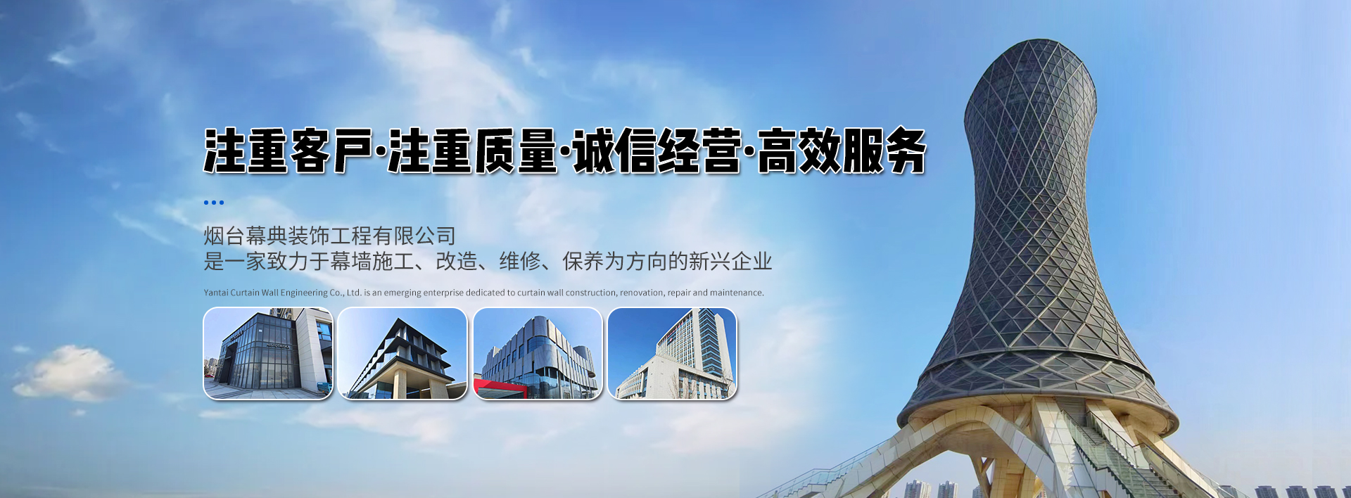 煙臺幕典裝飾工程有限公司是一家致力于幕墻施工、改造、維修、保養(yǎng)為方向的新興企業(yè)。公司成立于2017年,公司擁有技術(shù)骨干10余人,安裝施工人員60余人。主要技術(shù)人員從事幕墻行業(yè)20多年,對于玻璃、石材、金屬三種類型幕墻的制作、安裝、改造、維修,積累了豐富的寶貴經(jīng)驗(yàn)。我們隨時掌握著幕墻技術(shù)的新發(fā)展,通過現(xiàn)場勘察快速分析出幕墻破損及滲漏的主要原因,根據(jù)客戶需求量身制定快捷、經(jīng)濟(jì)、有效的解決...